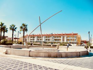 De boulevard zelf is breed, rustig en ideaal om te fietsen. Geen stress, geen gevecht om ruimte. Je rijdt langs palmbomen en kleine chiringuitos waar je de geur van gegrilde sardientjes niet kunt missen. Het is het soort geur waar je honger van krijgt, zelfs al heb je net gegeten.